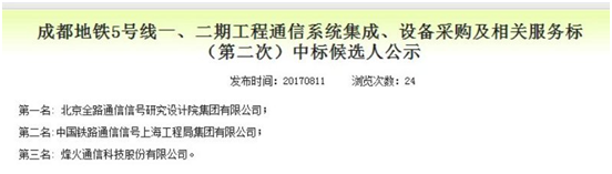 近日,成都地鐵5號線一、二期工程通信系統(tǒng)集成、設(shè)備采購招標(biāo)結(jié)果揭曉,中國通號集團北京全路通信信號研究設(shè)計院有限公司攜手廣東創(chuàng)電科技有限公司中標(biāo),創(chuàng)電科技將承擔(dān)交流電源屏和UPS電源系統(tǒng)項目。